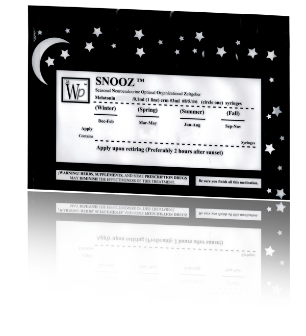 The Wiley Protocol SNOOZ™ is rhythmically dosed based on a circannual (changing with the seasons) dosing schedule and is packaged in black moon and stars color-coded envelopes and matching capped syringe applicators.