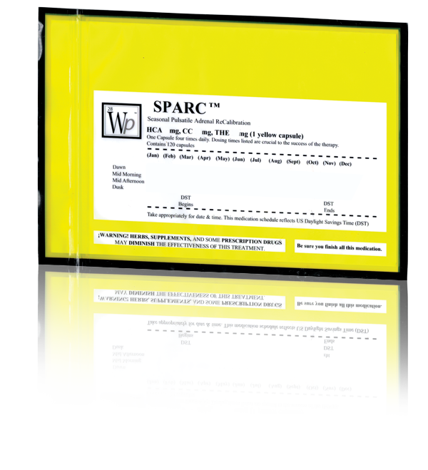 The Wiley Protocol SPARC™ comes as yellow compounded WP capsules containing the Wiley Protocol® proprietary bioidentical Cortisol replacement with a daily dosing schedule that changes seasonally, too, corresponding with sun light cycles.